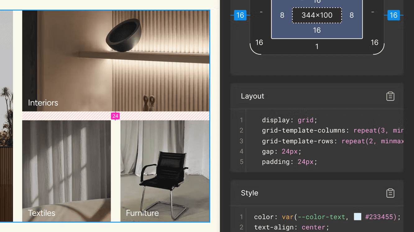 All of it exports to clean CSS through Dev Mode.