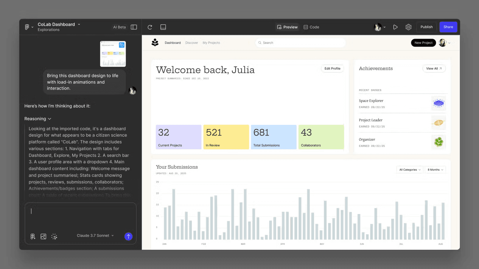 Powered by Claude 3.7, it turns prompts into real UI components.